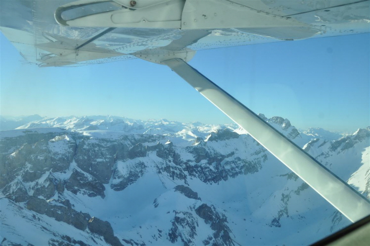 An Gletschern, Lawinen, Thälern vorebeigeflogen, quer durch die Schweiz.