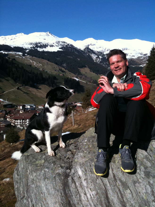 Charly und ich mit Ausblick auf den Gletscher