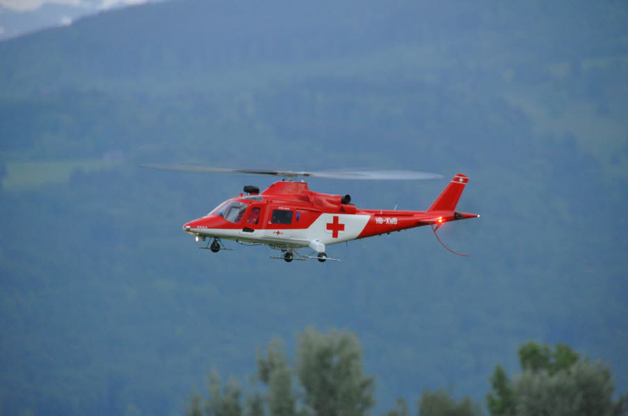 Die Agusta A109K2 hat ihren Einsatz im Grabser Riet beendet