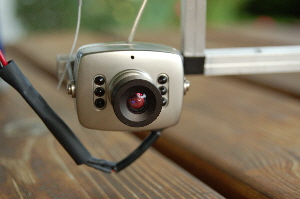 In meiner Elektronikkiste fand ich noch eine "alte" Funkkamera. Diese würde sich doch ideal eignen für die Zielvorrichtung. Gesagt getan, die kleine Funkkamera wurde neben der Videokamera positioniert. Durch die Verwendung von Alusteckprofilen war das auch gar keine Sache. Die kleine Funkkamera hat zwar nicht ein wirklich gutes Bild, aber fürs zielen sollte es reichen. Für gute Qualität habe ich ja die Hauptkamera.